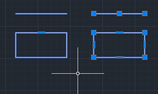 A similar problem can arise when moving objects too far in the Z-axis. Compare the grips on the objects on the left (moved to Z=9.9E+12) and on the right (same objects, Z=0):