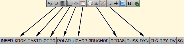 Pomocné režimy lze zapínat, vypínat a nastavovat kdykoli, tedy i během kreslicího nebo editačního příkazu.