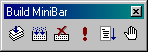 Panel nástrojů Build Minibar obsahuje základní tlačítka se základními povely pro překlad, spuštění a ladění programu.