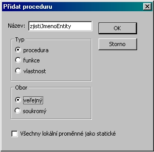 Všechny procedury budeme zadávat pomocí dialogového boxu Přidat proceduru.