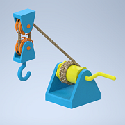 Kladkostroj (sestava) - kladka, lano a navíjecí buben s klikou, parametrická animace (viz Tip 12854)