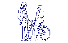 Rozmlouvající pár, muž a dívka na stojícím kole