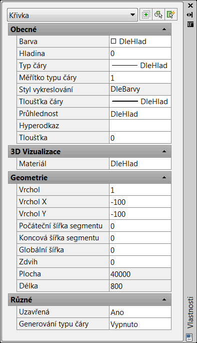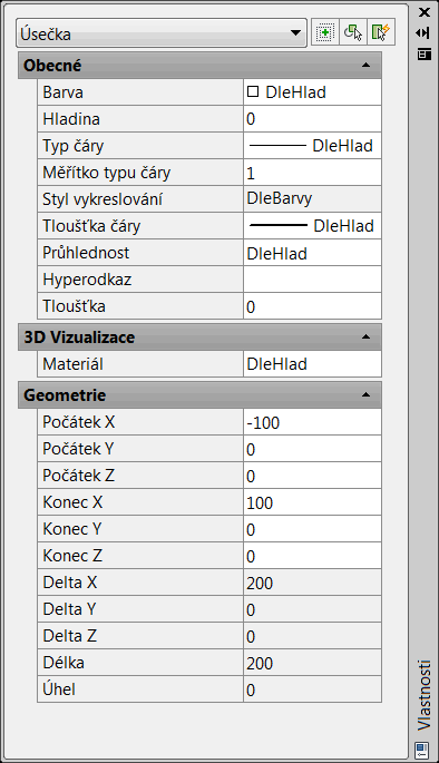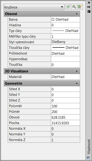 Každý objekt v AutoCADu má obecné vlastnosti společné všem objektům a geometrické vlastnosti určující daný objekt. Kromě toho mají objekty další specifické vlastnosti.