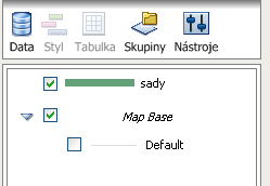 4. V seznamu dostupných vrstev se zobrazí pouze položka sady - tu zaškrtněte a zvolte přidat do mapy