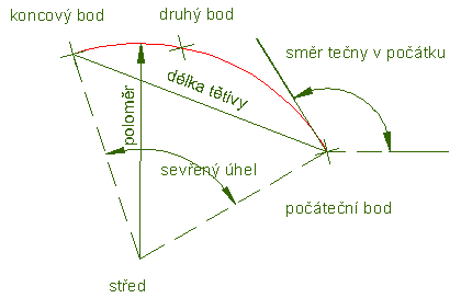 Pokud chceme zadávat oblouk počátečním bodem, středem a koncovým