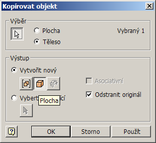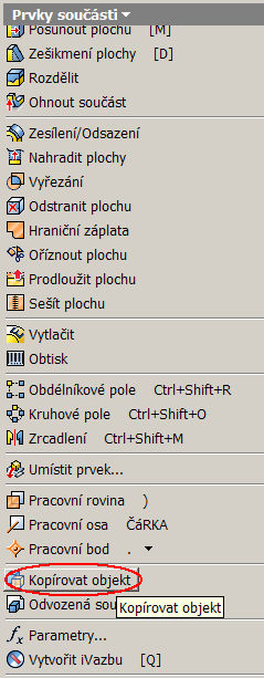 Oba způsoby je možné i kombinovat. Některé funkce pro úpravu ploch modelu (Odstranit plochu, Sešít, ...) jsou dostupné i v běžné nabídce součásti.