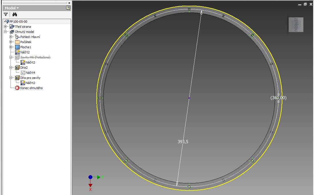 Mam v nacrtu bod a ten ma kruhove pole, pak dira na body v nacrtu. Na obrazku je videt nacrt, ktere diry by mely mit potom zavity.