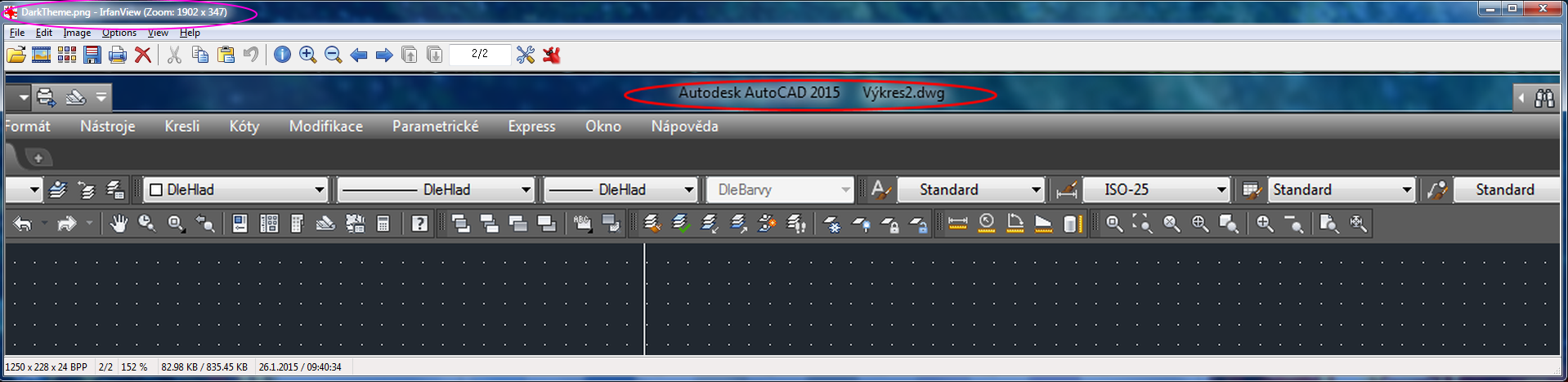 Na Win 8 lze dosáhnout, že ACAD 2015 má na tmavém pozadí text bíle (Titlebar). ... |