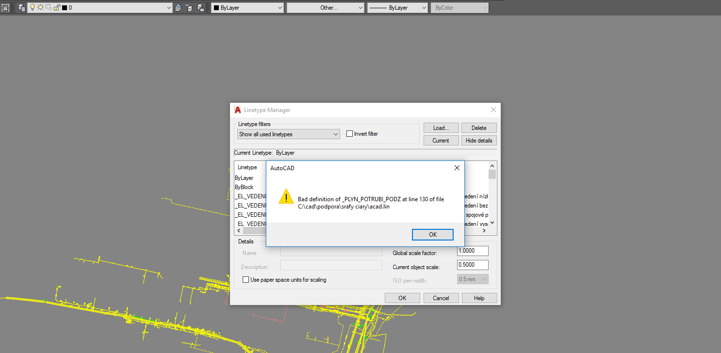 prvním příspěvku tazatele to hlásí chybu v souboru ACAD.LIN, hlásí to