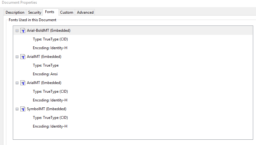 Nevím, zda je to obecný závěr, ale http://itext.2136553.n4.nabble.com/Difference-between-WINANSI-and-IDENTITY-H-encoding-types-td2172534.html" rel="nofollow - v odkazu zde se píše: ... if you want to do anything other than English, you MUST use Identity-H and embed the font. ---edit--- Také je pravda, že z ukázkového PDF nelze všechny texty kopírovat - jenom některé řádky. Ostatní se po vložení do poznámkového bloku jeví nečitelné. Není možné použít běžný Arial, nikoliv ArialMT nebo ArialMT odinstalovat a nechat pouze Arial?