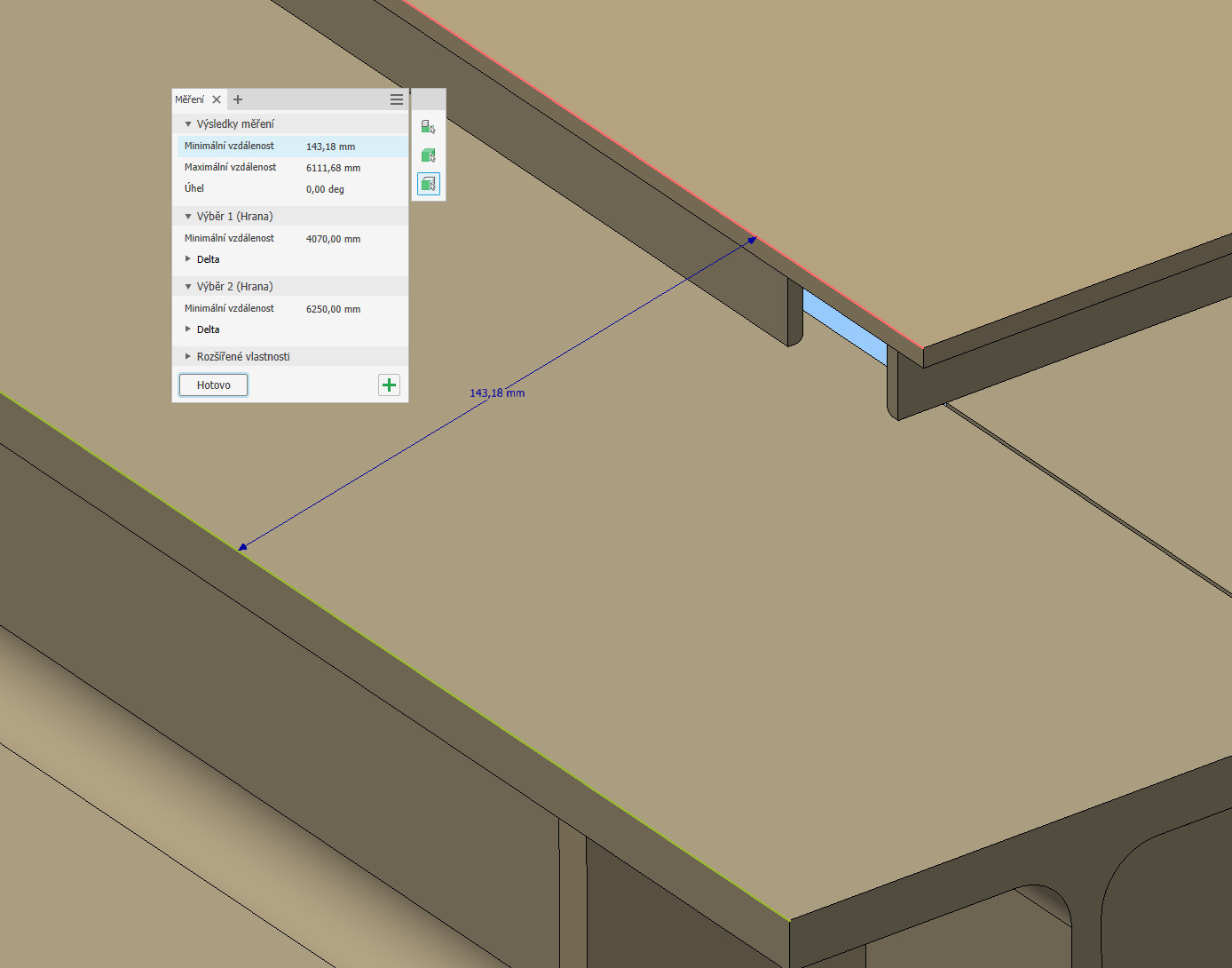 2) Vzdálenost jejich hran je 143,16 mm:
