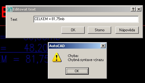 | DTEXT - Chyba syntaxe výrazu Vytištěno z: CAD Fórum Kategorie: Autodesk - stavebnictví, strojírenství, CAD/GIS Název fóra: AutoCAD Popis fóra: Otázky kolem aplikací AutoCAD a AutoCAD LT, AutoCAD 360, prohlížečů, DWG a DWF, Design Review, Navisworks, nadstavby, 123D, A360 a cloud Autodesk 360 URL: https://www.cadforum.cz/forum/forum_posts.asp?TID=4603 Datum vytištění: 22.dub.2026 v 10:30 Téma: DTEXT - Chyba syntaxe výrazu Odeslal: PepaR Předmět: DTEXT - Chyba syntaxe výrazu Datum odeslání: 22.kvě.2007 v 16:16